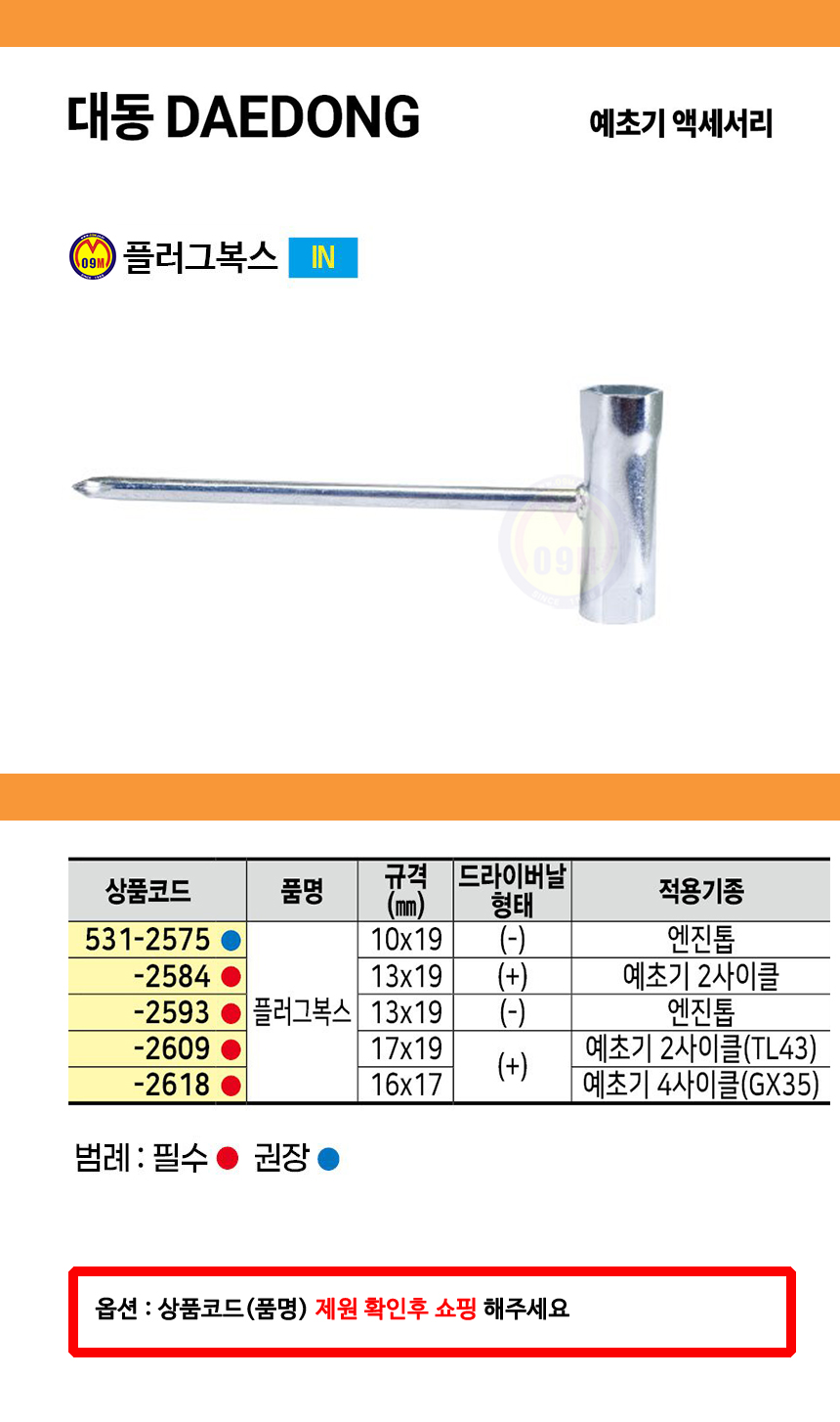 대동 플러그복스 예초기용,엔진톱용, 2사이클용, 2사이클(TL43), 4사이클(GX35) 예초기부품, 공구몰 531-2575