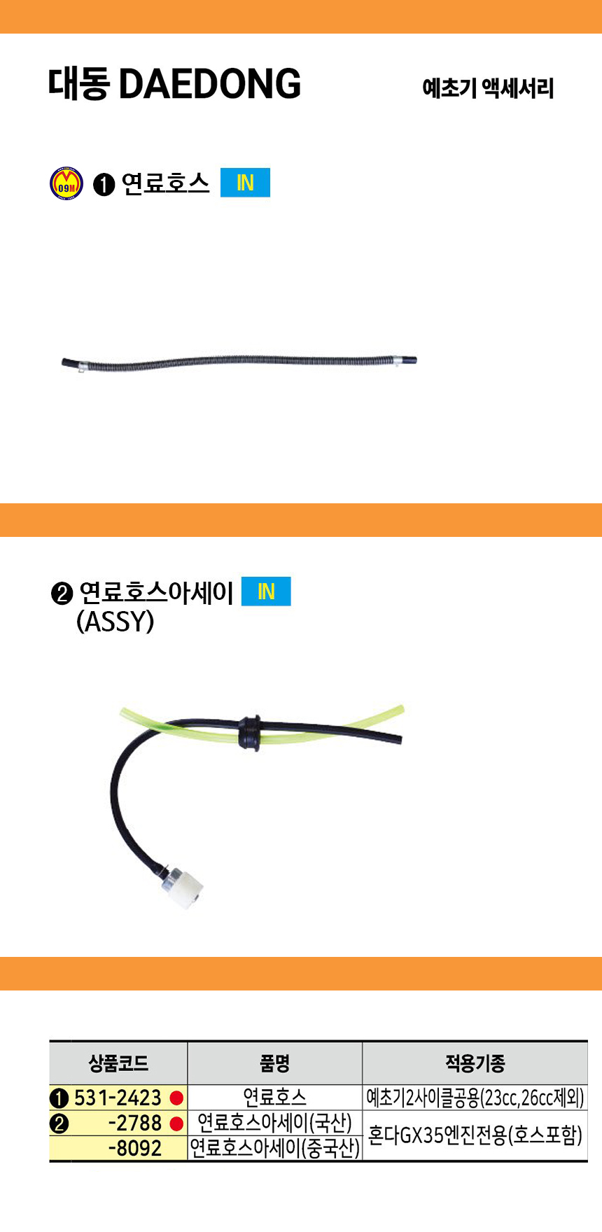 대동 연료호스아세이 혼다엔진GX-35전용 국산/중국산 예초기부품, 부속 공구몰 531-8092