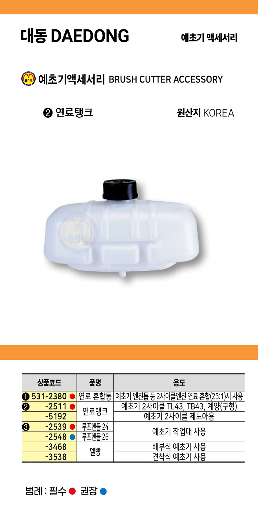 대동 연료탱크 2사이클전용/ 제노아전용 예초기기름통, 부품, 부속 공구몰 531-2511