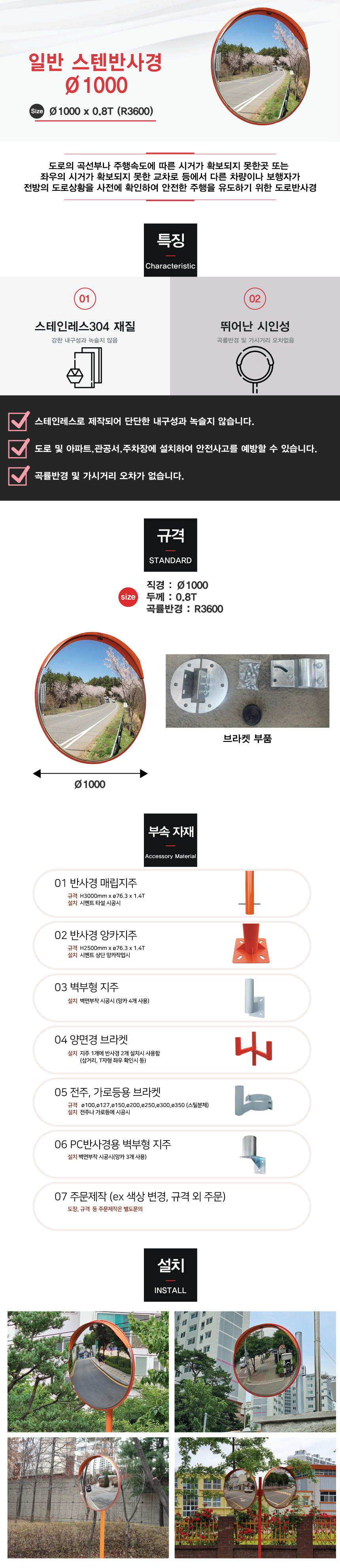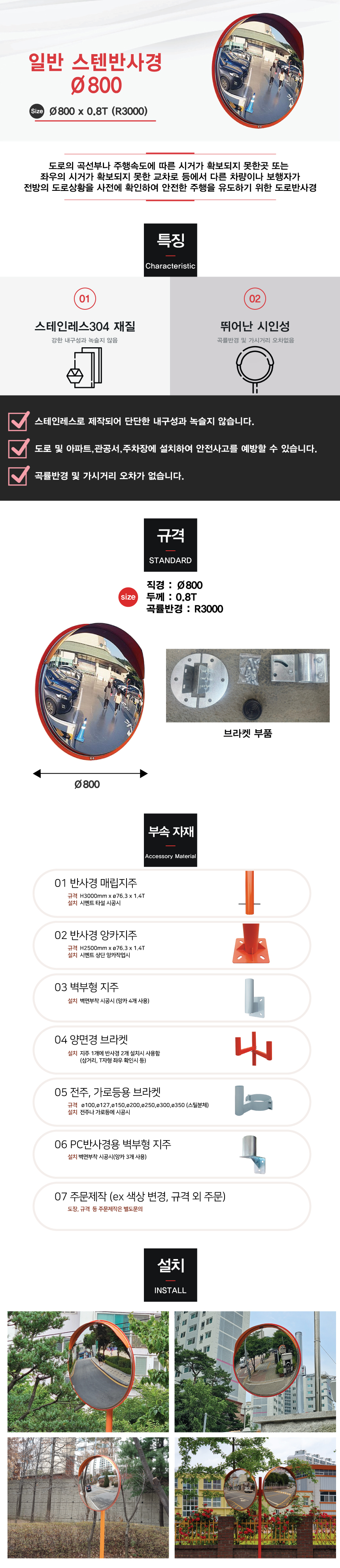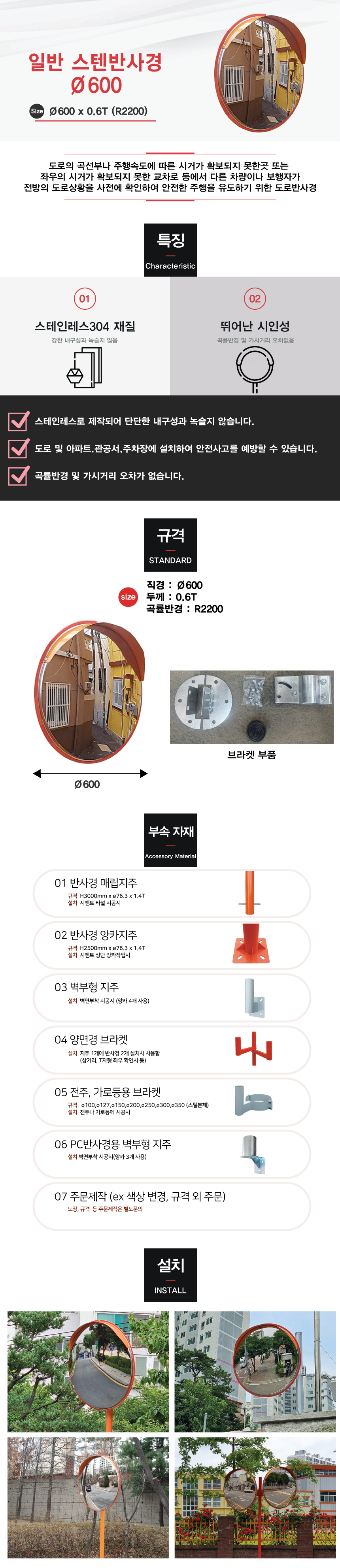 해광 H13 일반스텐반사경 600, 800,1000mm (부속별매) 오목거울,아파트, 상가건물, 빌딩등 설치권장 H13-600mm