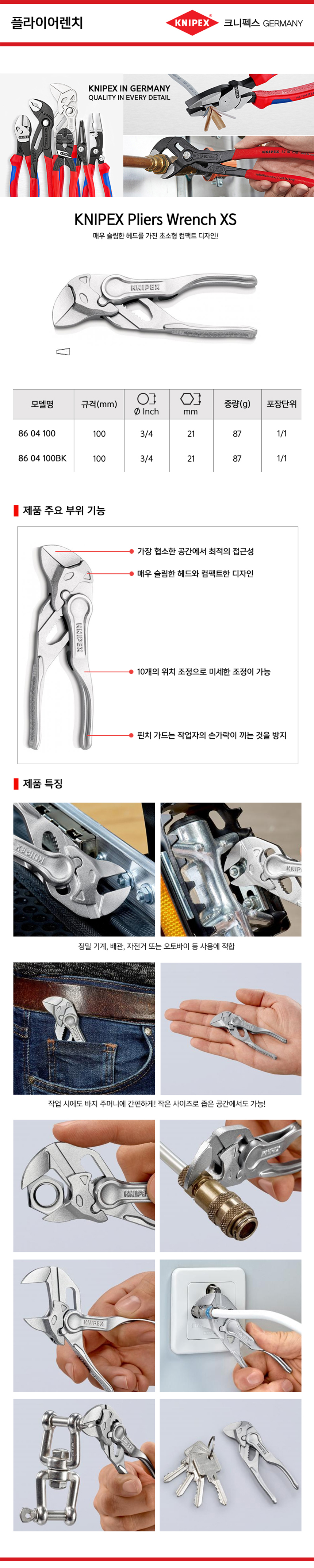 크니펙스 플라이어렌치 86-04-100/ 100BK (0-21mm) Knipex 첼라, 워터펌프플라이어 공구몰 C217-4406
