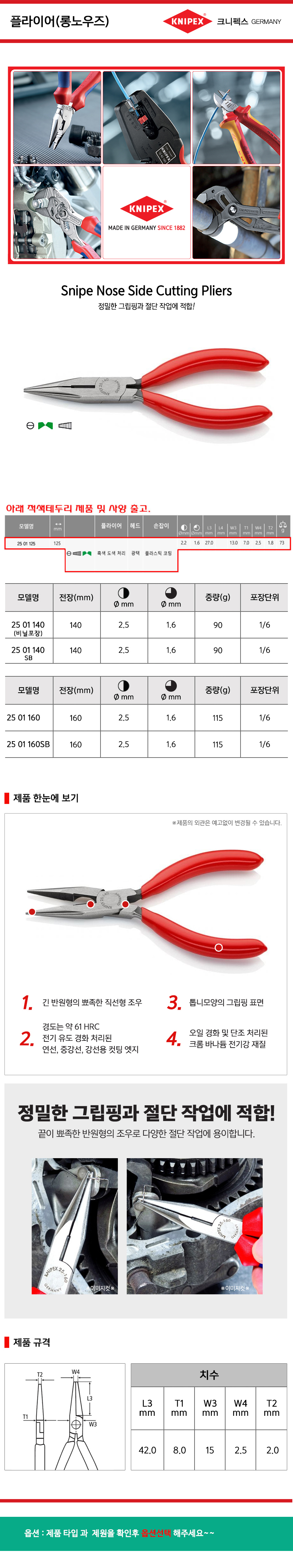 크니펙스 플라이어(롱노우즈) 25-02-140, 25-02-160 Knipex 롱로우즈 공구몰 101001020066