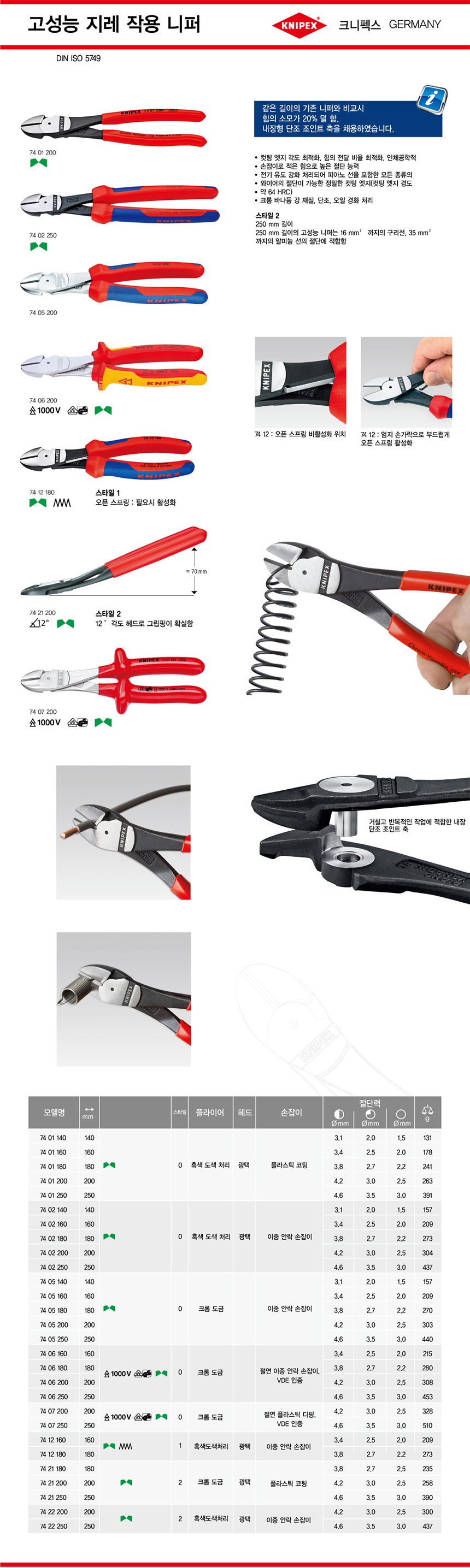 크니펙스 니퍼(고강력) 74-05-140, 160, 180SB, 200SB KNIPEX 독일공구, 수공구 작업공구 공구몰 74-05-140 (비닐포장)
