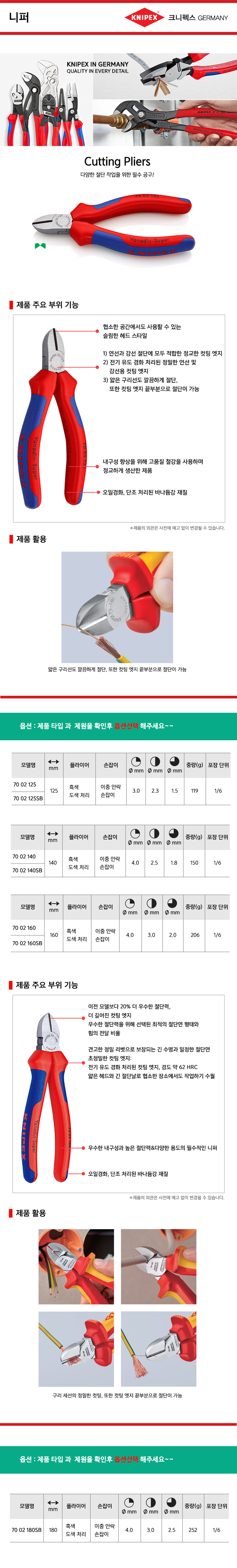 크니펙스 니퍼 70-02-125, 125SB, 140, 140SB, 160, 160SB, 180SB Knipex 독일공구, 독일수공구 공구몰추천 101001000072
