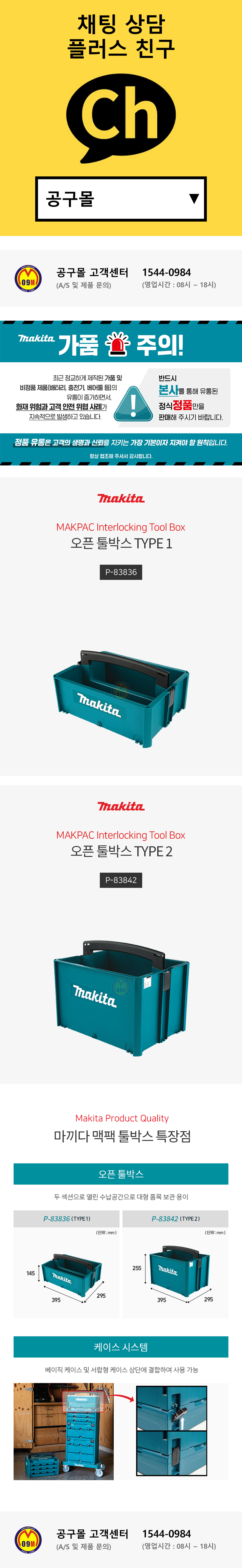 마끼다 맥팩 오픈형 툴박스 (소형 대형) P-83836 P-83842 공구함 공구상사