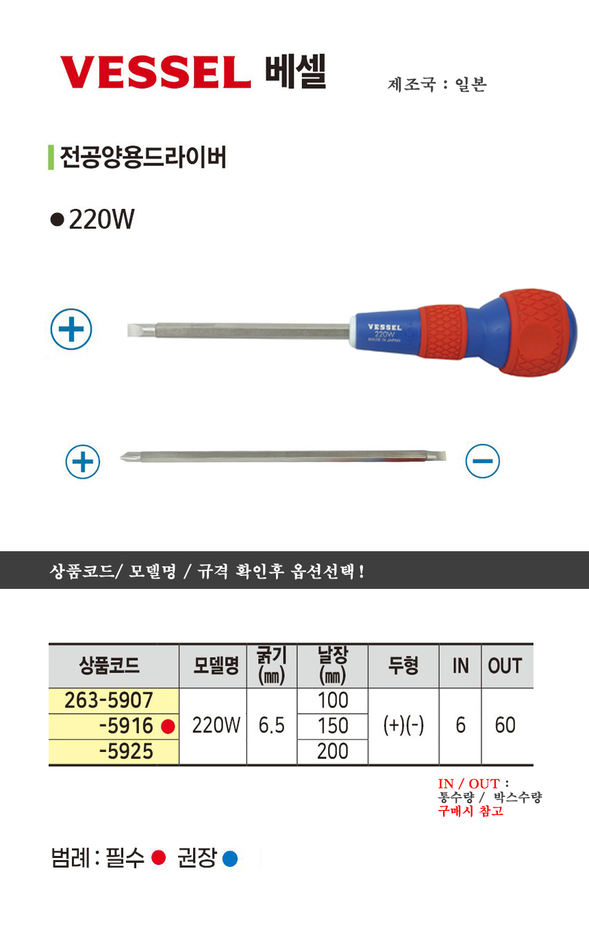 베셀 양용드라이버 5300W 6.5x100mm/150mm/200mm VESSEL